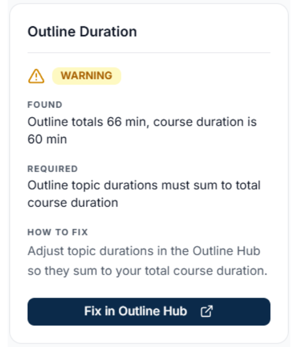 Duration compliance Verifies content matches declared duration.